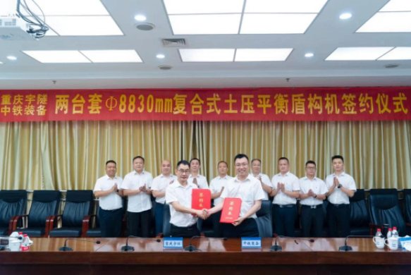 6月23日,中铁装备集团与重庆智邦集团——重庆宇隧交通设备有限公司在郑州举行两台φ8.83米复合式土压平衡盾构机采购签约仪式。